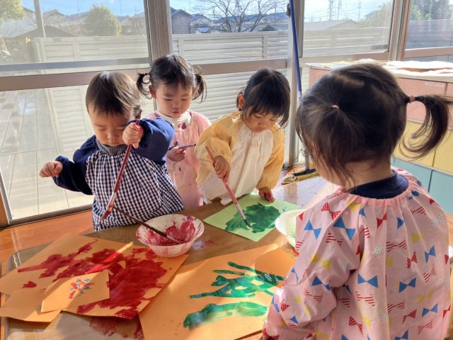 ことり組の絵の具遊び